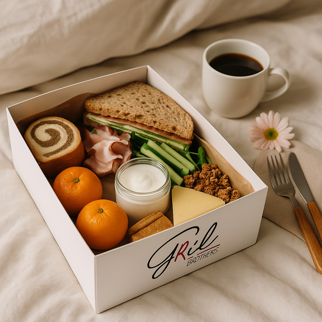 "Raňajková krabička plná poctivých chutí – pretože deň sa začína najlepšie s niečím dobrým, priamo do postele." ☕🥐🌸.
